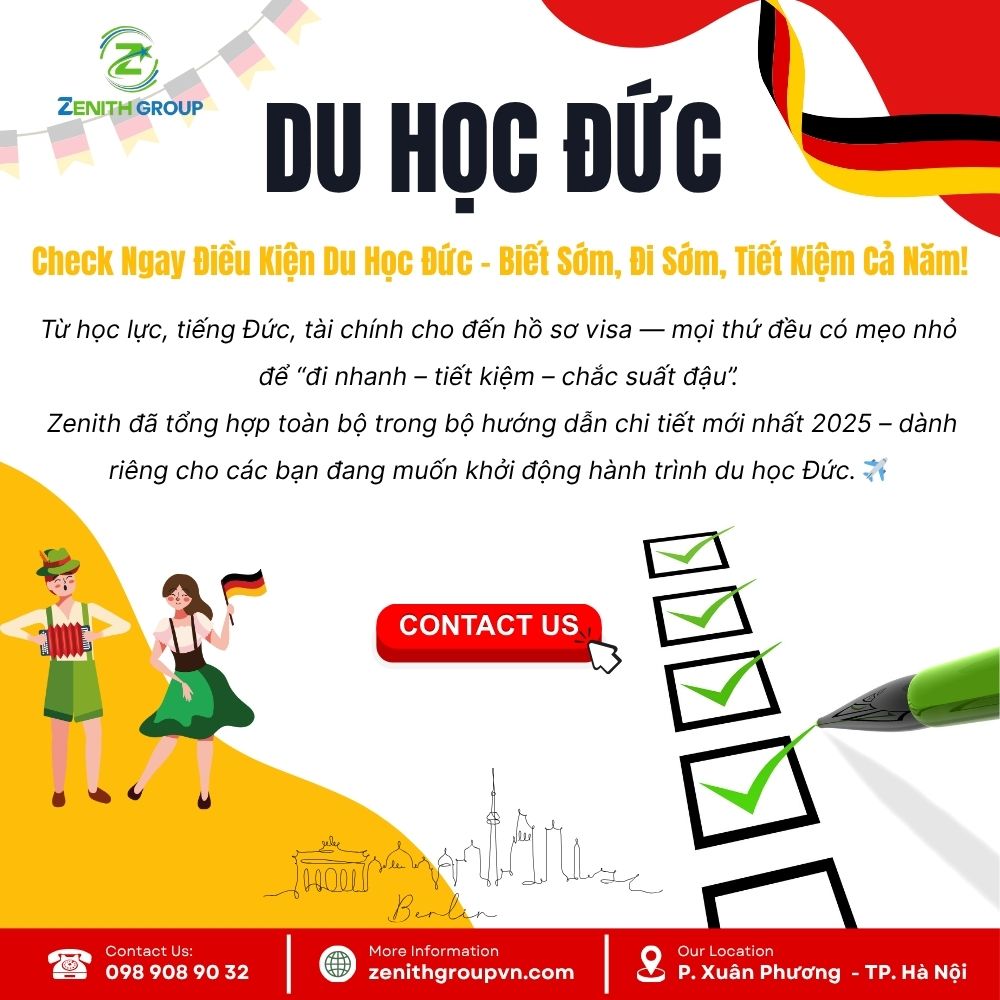 Nếu bạn đang ấp ủ giấc mơ du học, hãy bắt đầu ngay hôm nay bằng việc kiểm tra điều kiện du học Đức của bản thân cùng đội ngũ Zenith.