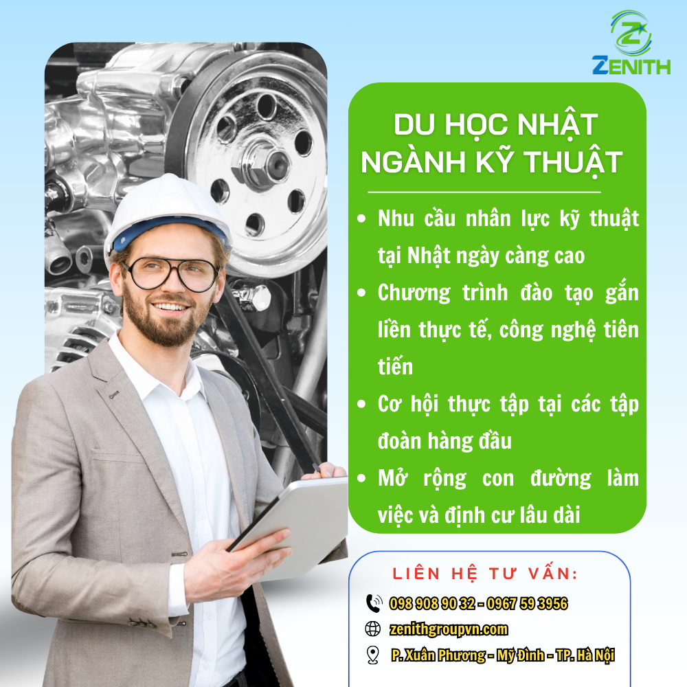 Khám phá lý do vì sao nên chọn du học Nhật – ngành Kỹ Thuật trong năm 2025. Cơ hội học tập, việc làm và định cư lâu dài tại Nhật Bản cùng sự đồng hành của Công ty Cổ phần Hợp tác Quốc tế Zenith.