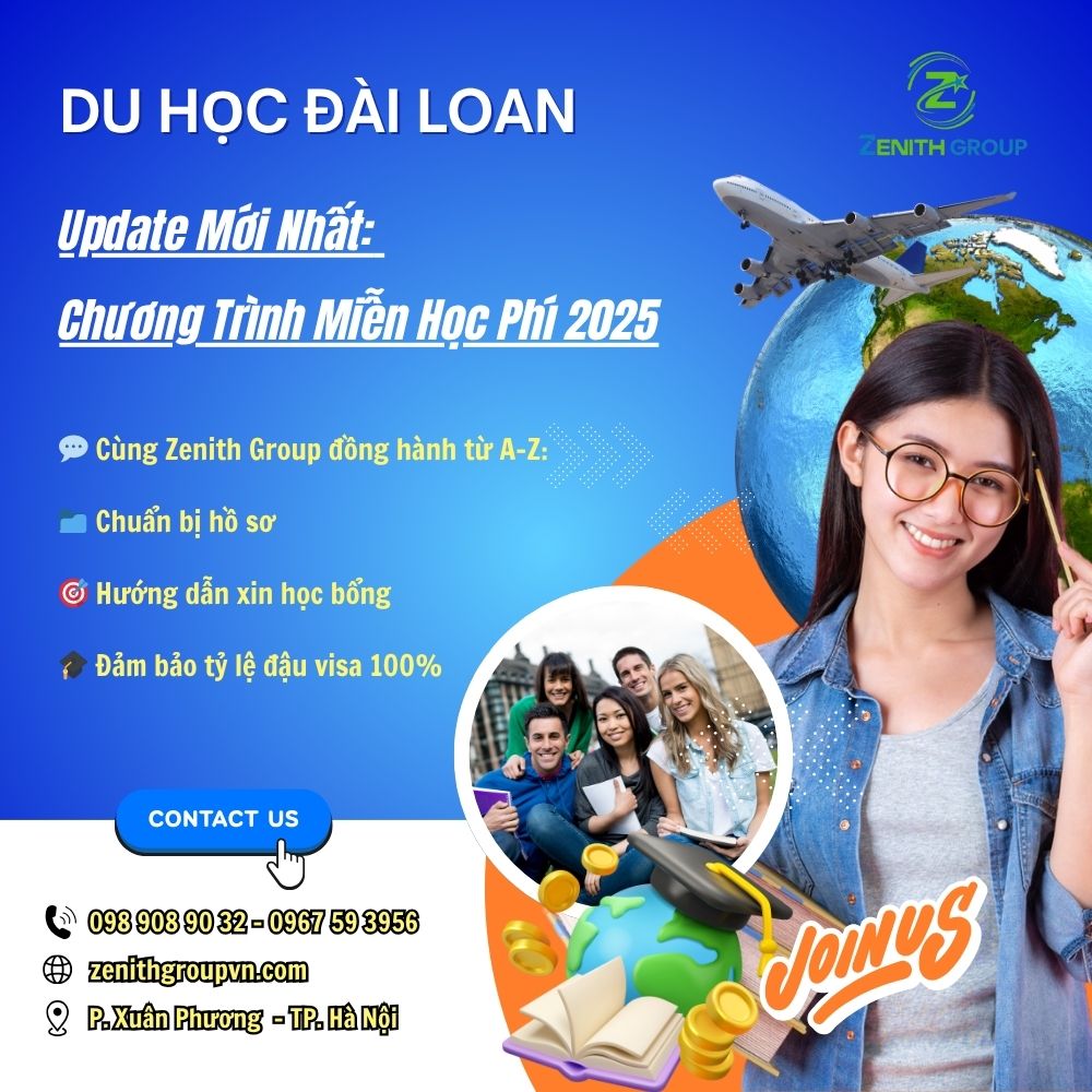 Du Học Đài Loan Miễn Học Phí 2025 cùng ZENITH