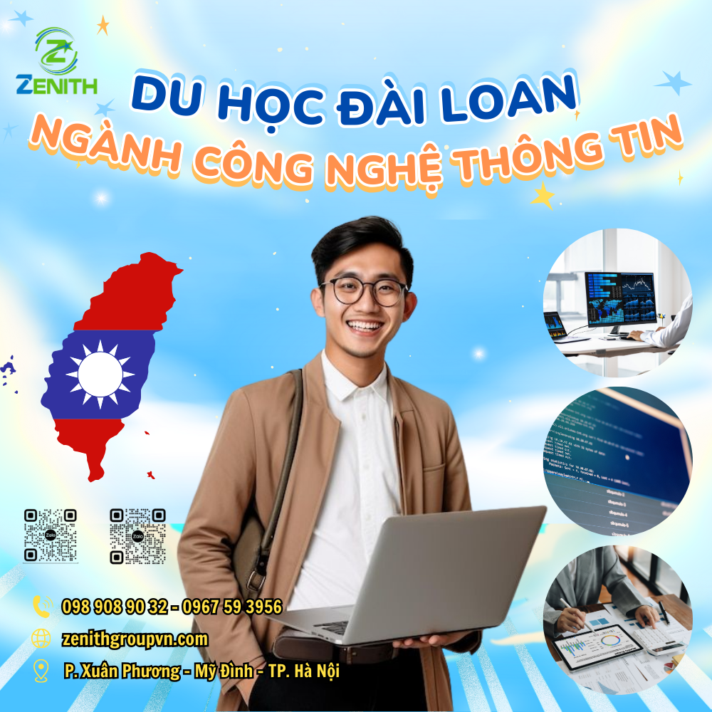 Du học Đài Loan ngành Công Nghệ Thông Tin mang lại cho bạn kiến thức hiện đại, cơ hội việc làm quốc tế và mức học phí hợp lý. Cùng Zenith tìm hiểu lộ trình chi tiết để biến giấc mơ du học thành hiện thực.