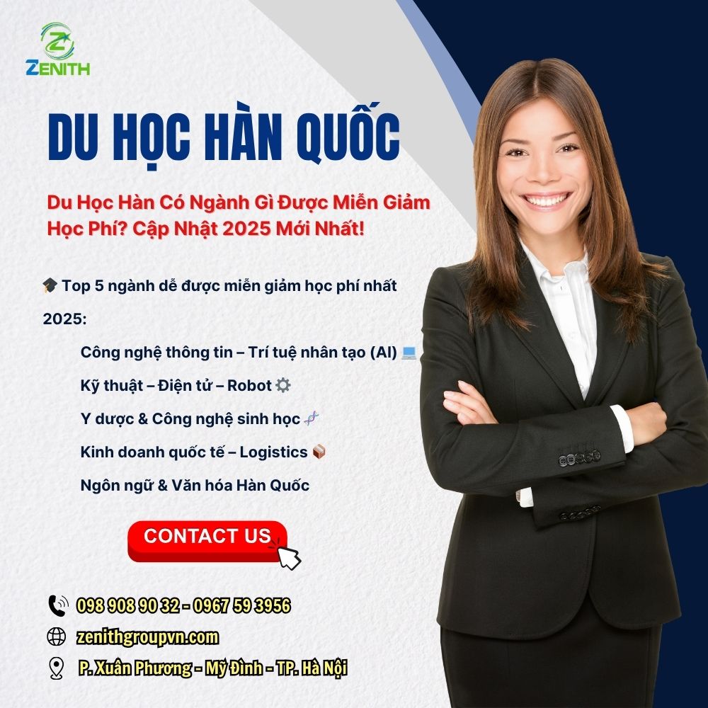 Du học Hàn có ngành gì được miễn giảm học phí 2025? Khám phá 10 ngành “hot”, chính sách miễn giảm học phí & học bổng mới nhất, và cách đăng ký cùng công ty hỗ trợ Zenith – tất cả bạn cần biết để đi du học Hàn tự tin!