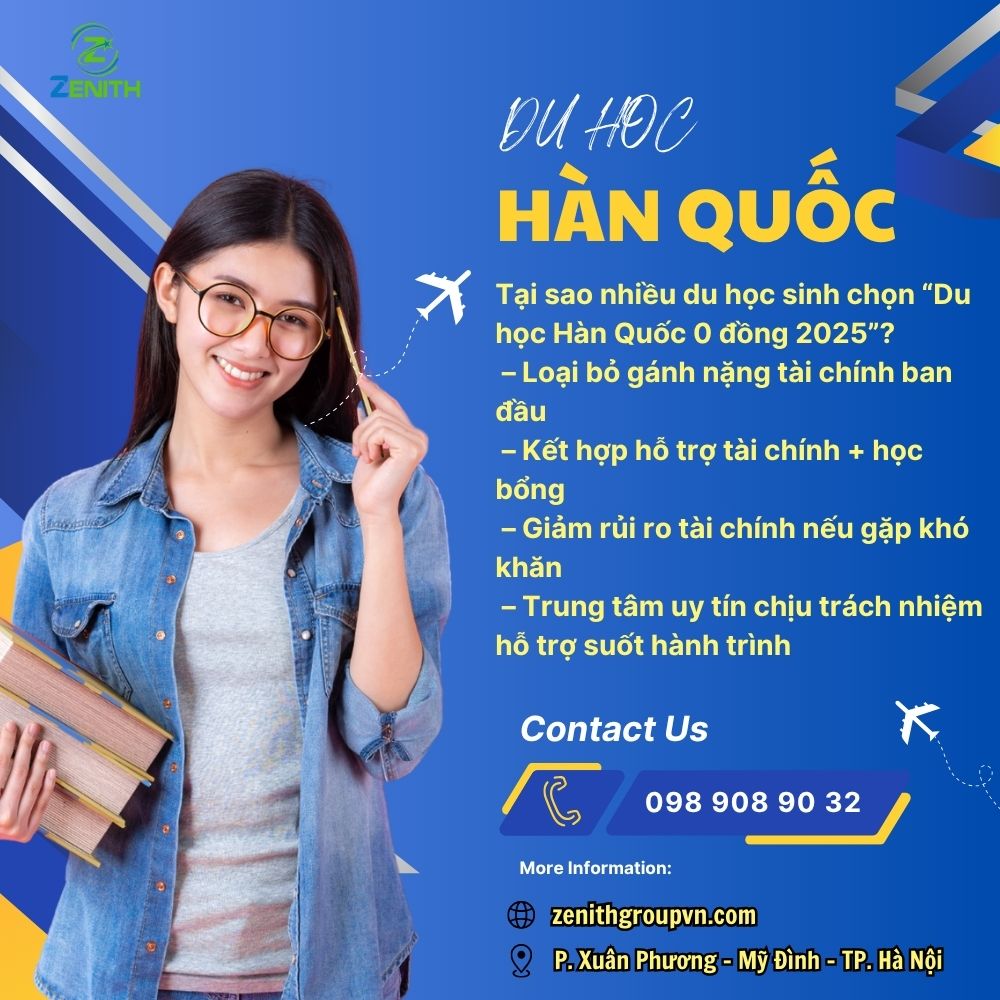 Nếu bạn thực sự nghiêm túc và quyết tâm, Du học Hàn Quốc 0 đồng 2025 không chỉ là giấc mơ mà là lựa chọn khả thi. Liên hệ Zenith ngay hôm nay để được đánh giá, định hướng và lên lộ trình chi tiết!