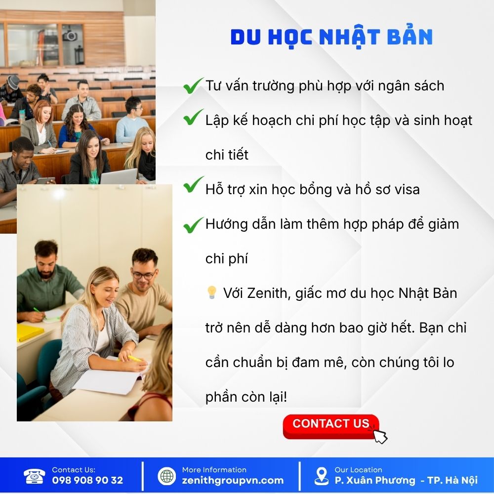 Zenith khuyên bạn nên lập kế hoạch chi tiết, kết hợp học bổng và làm thêm để tối ưu chi phí. Vậy là câu hỏi du học Nhật Bản hết bao nhiêu tiền không còn là nỗi lo nữa.