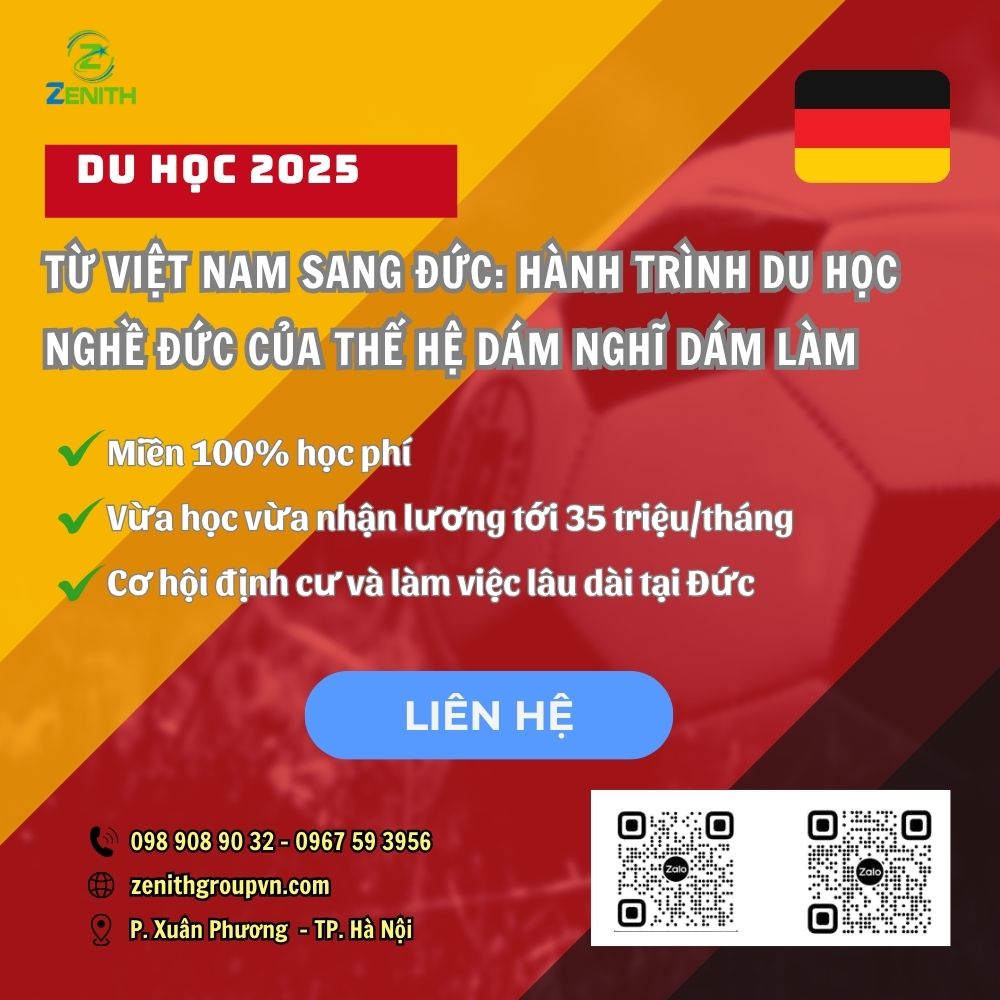 “Từ Việt Nam sang Đức: Hành trình Du học Nghề Đức của thế hệ dám nghĩ dám làm – hướng dẫn A → Z điều kiện, chi phí, lộ trình, khó khăn và bí quyết thành công cùng Zenith.”