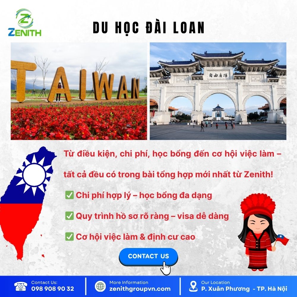 Du học Đài Loan 2025 – Cập nhật mới nhất về chi phí, học bổng, điều kiện, quy trình hồ sơ, visa, và cơ hội việc làm. Bài viết chuyên sâu từ Công ty Cổ phần Hợp tác Quốc tế Zenith giúp bạn chuẩn bị vững vàng cho hành trình du học Đài Loan thành công.